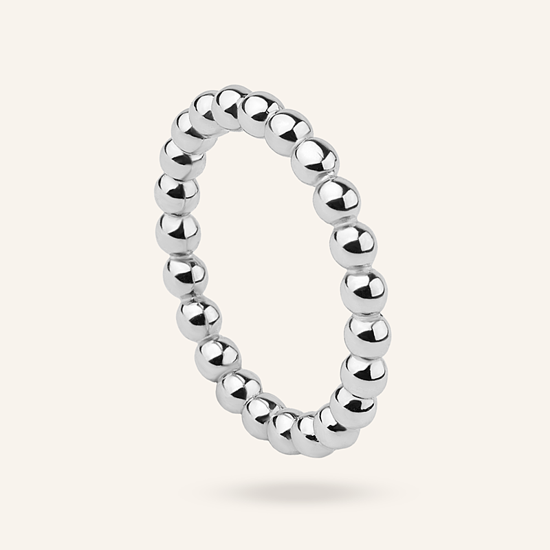 Minimalistický stříbrný prsten z hladkých korálků je ztělesněním rafinované elegance a každodenního pohodlí. Jeho geometrická jednoduchost a zrcadlový lesk dodávají vzhledu lehkost a dokonalost a podtrhují individualitu bez zbytečné okázalosti. Jedná se o univerzální šperk, který lze snadno kombinovat s jinými prsteny nebo nosit samostatně – volba pro ty, kteří ocení rovnováhu mezi stylem a funkčností.